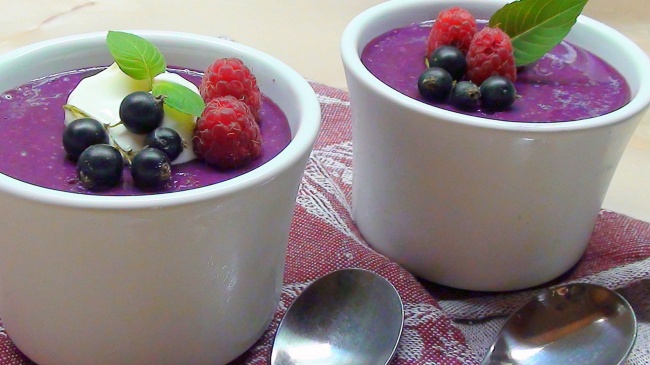 Вливаємо тонкою цівкою згущене молоко і ще раз збиваємо. Розливаємо в порційні форми. Прибираємо в холодильник до повного застигання. При подачі прикрашаємо ягодами.