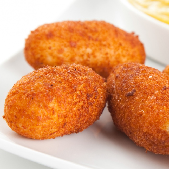 Охолоджені яйця обвалюють у борошні, потім у збите сире яйце віночком, занурюємо в мелені сухарі і обсмажуємо у фритюрі.