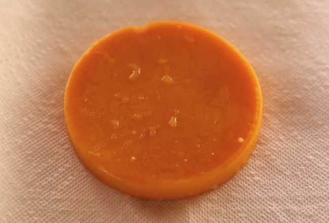 Перелити у форму і ставимо її в миску з льодом. Прибираємо в холодильник. Як тільки морквяне масло затвердіє, перекладаємо його на тарілку. Можна використовувати в якості бутербродного масла, а можна злегка розтопити і використовувати як соус.