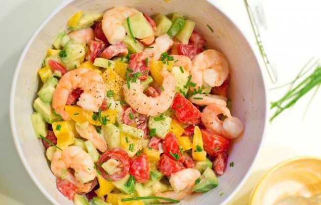 Овочевий салат з креветками і йогуртовій заправкою
