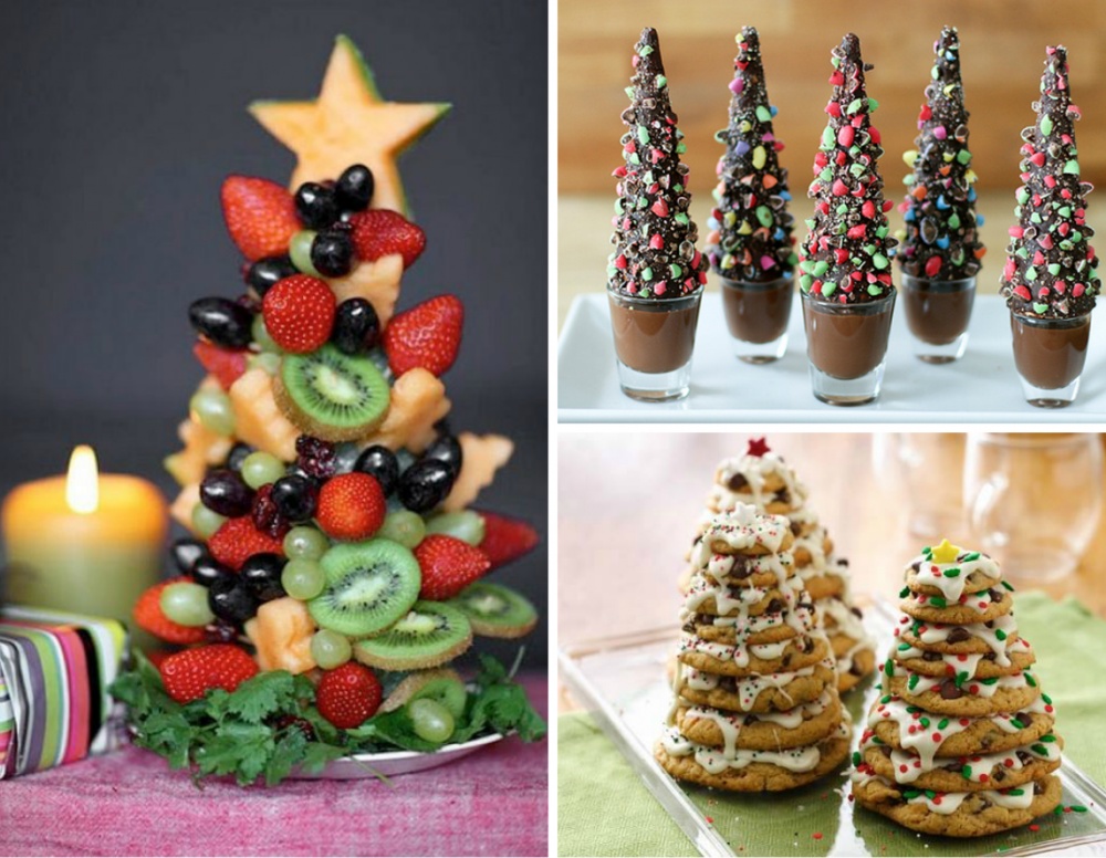 Ялинки на десерт (фрукти, шоколадні цукерки та печиво)