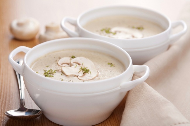 - Злити трохи води з вже сварившегося картоплі, додати до нього подрібнену масу з цибулі і грибів. Влити вершки і перемішати все блендером.