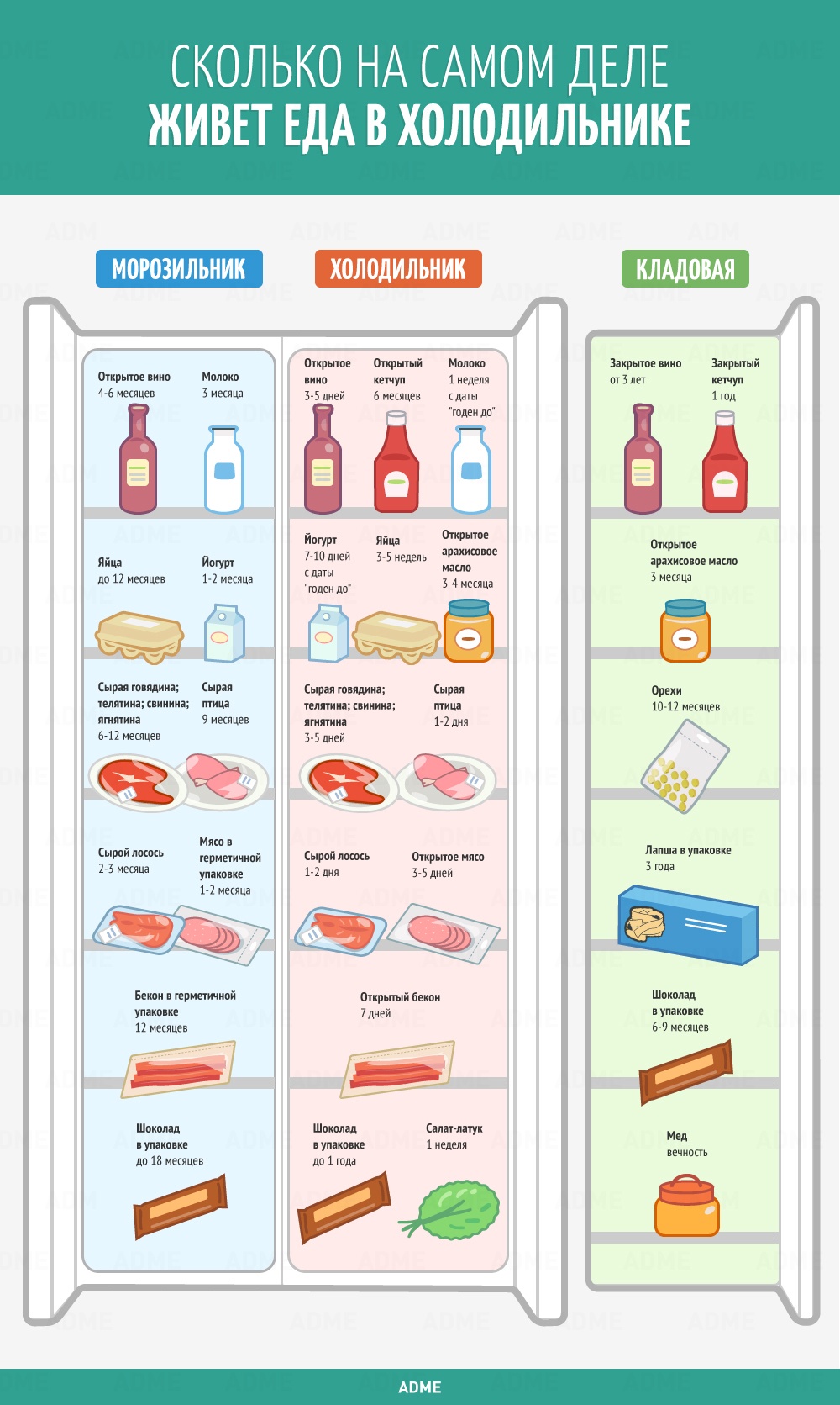 Social.org.ua представляє вашій увазі неймовірно корисну інфографіку, подсказывающую, скільки ваша улюблена їжа може зберігатися в холодильнику.