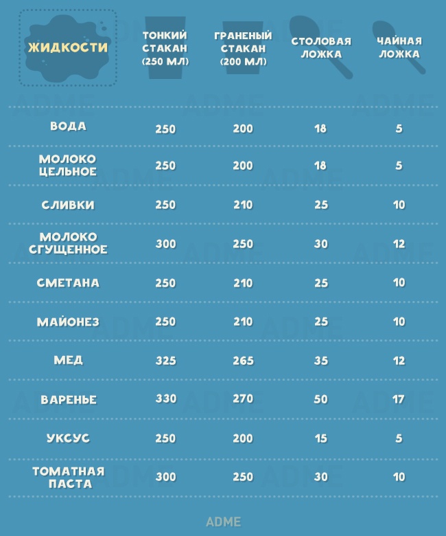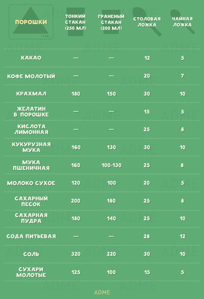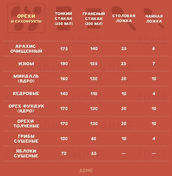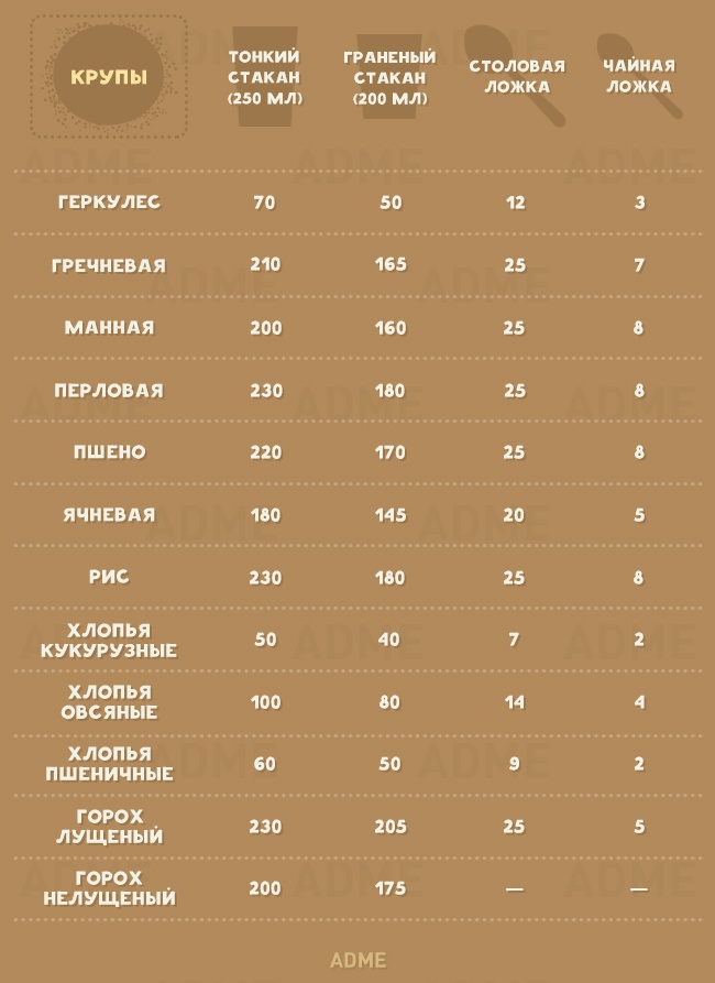 Іноді в рецептах пишуть кількість продуктів в грамах, а ваг немає. Можна начебто скористатися склянкою, ложкою, але біда в тому, що різні продукти в одному об'ємі важать по-різному.