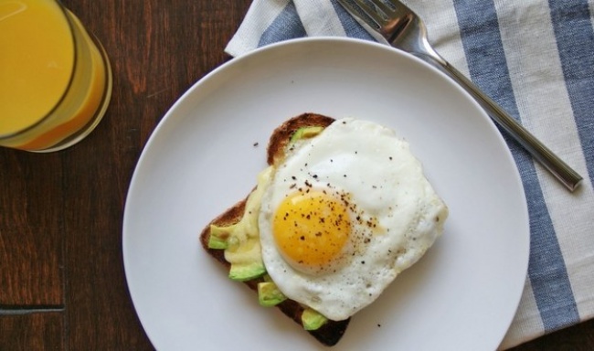 Тост разом з авокадо і сиром потрібно підігріти с духовці. Зверху покласти тільки що приготовану яєчню і приправити спеціями. Мало того що це відмінне джерело білка і рослинних жирів, так ще й дозволяє зберегти почуття ситості до обіду.