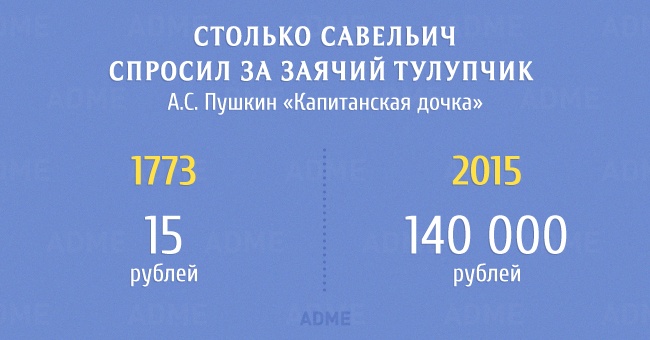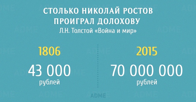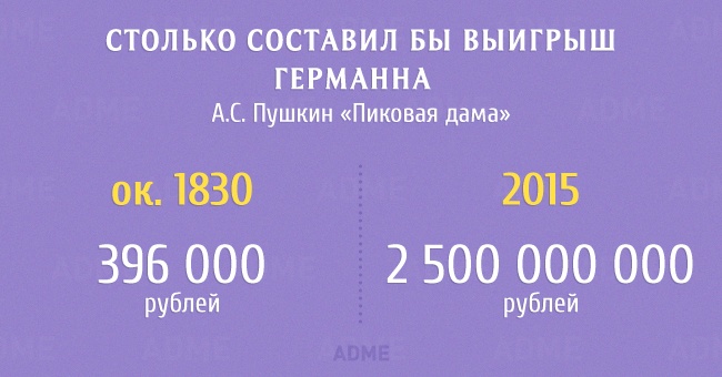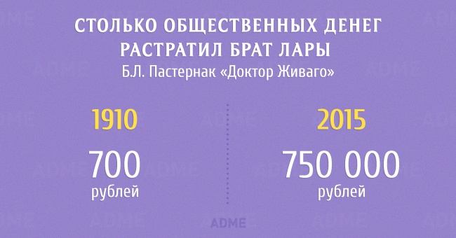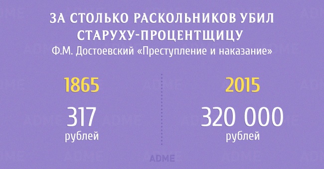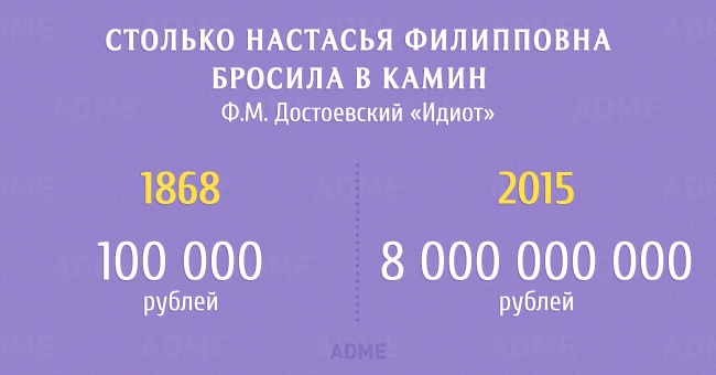 Як і в будь-якій іншій літературі, в класичних російських творах присутня тема грошей: Розкольників заборгував старенькій 317 рублів за оренду квартири, Германн програв всі заощадження в карти, Настасья Пилипівна кинула 100 тисяч рублів в камін. Це все — гроші того часу, а скільки б це було у сучасних рублях?