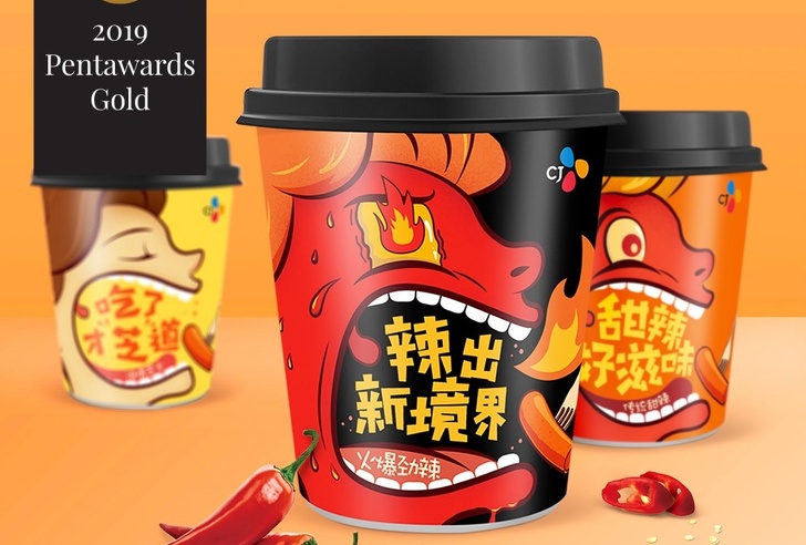 Дизайн упаковки гострих смажених рисових коржів наочно показує ступінь пекучості продукту