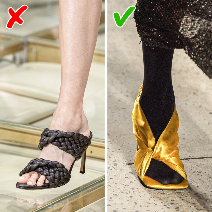 Навіть такого простого предмета гардероба, як босоніжки, торкнулися зміни. Дизайнери Tibi, Sies Marjan і Staud одноголосно рекомендують прибрати подалі взуття з круглим і гострим носами і згадати про тренді з 90-х — взуття з квадратним або прямокутним мисом.