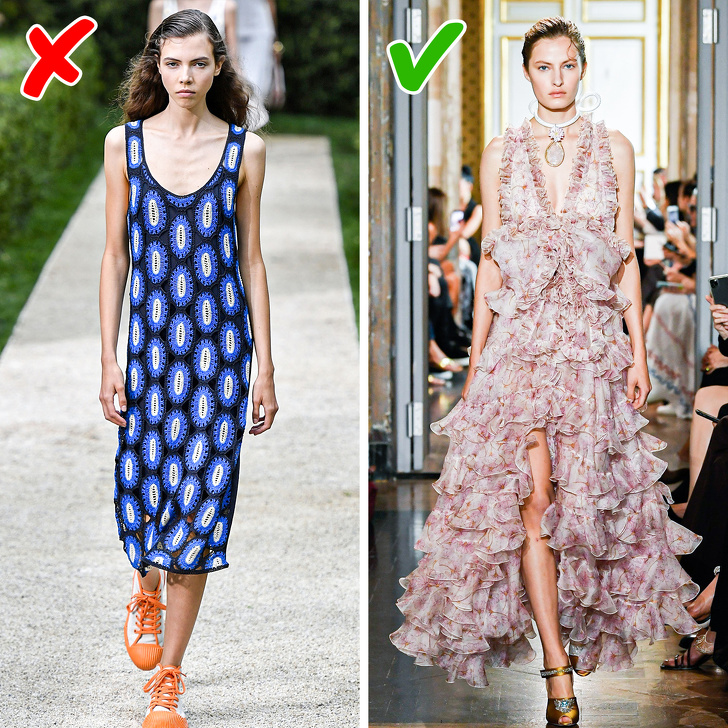 Речі з присборенной обробкою довго трималися на піку популярності. Тим не менш Fendi, Mugler, Loewe несподівано вирішили воскресити тренд, який свого часу викликав багато суперечок — спідня білизна в якості основного предмета одягу. Експерти моди закликають не соромитися цієї весни, а пуститися у всі тяжкі: топи замінити на мереживні бюстгальтери, трикотажне плаття — на ночнушку і придбати хоча б одну прозору блузку. Знаменитості вже щосили освоюють цей тренд, але чи зважитеся на нього ви?