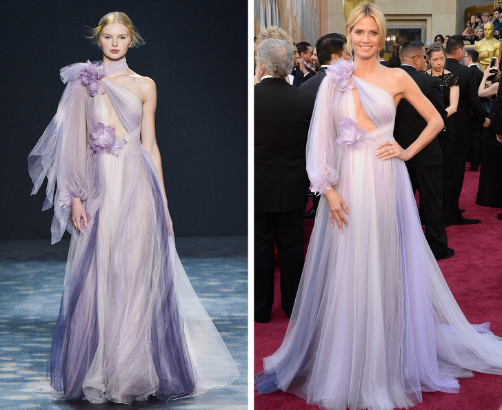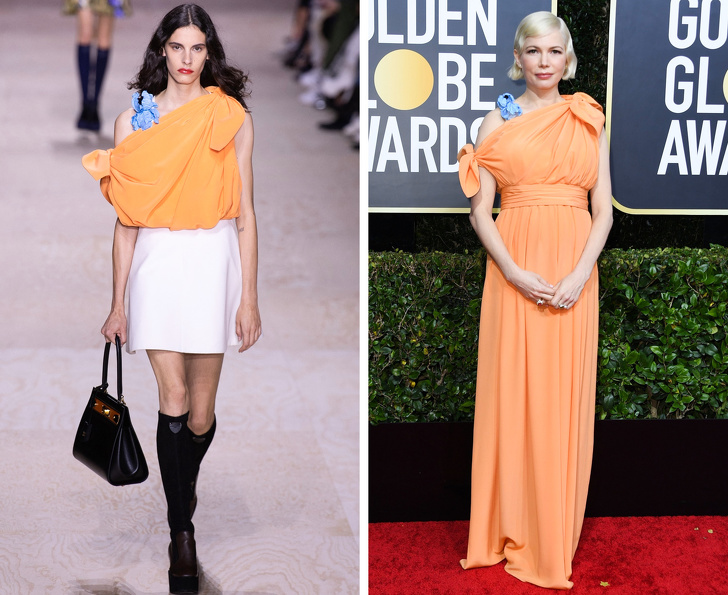 Знаменитості часто вибирають для своїх виходів вбрання, представлені на показах іменитих будинків моди. Хто із зірок повторює подіумний образ практично один в один, але все одно виглядає інакше за рахунок особливостей фігури та індивідуальності. А для кого-то дизайнери видозмінюють костюм, який демонструвався на модному дефіле. Наприклад, для Мішель Вільямс було пошито на замовлення сукню, відправною крапкою для створення якого послужив топ з показу Louis Vuitton. Але добре вбрання з подіуму сидять на зірках?
