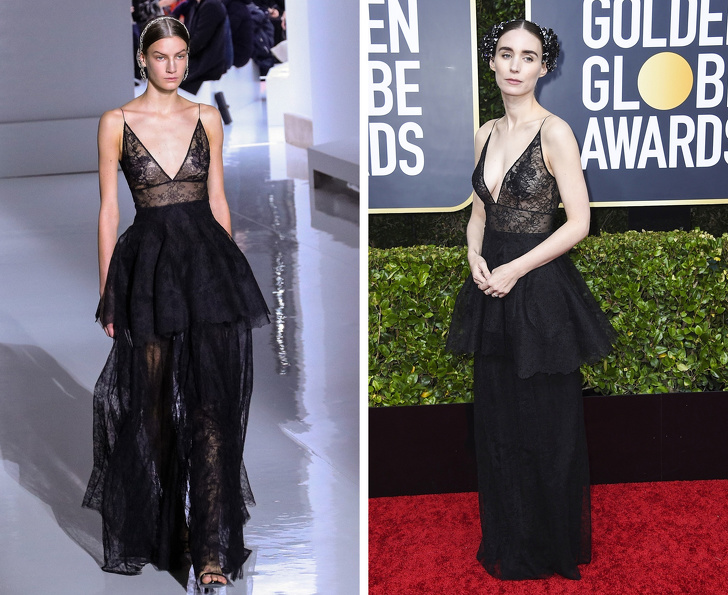 Руні доповнила образ незвичайним прикрасою для волосся і була схожа в чорному напівпрозорому платті з мережива на порцелянову статуетку.