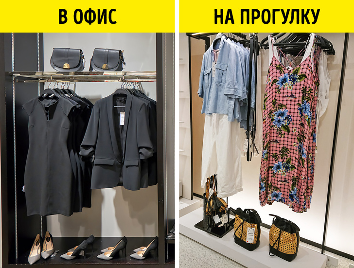 Якщо подивитися на полиці і вітрини, то можна виявити, що всі речі, які висять поруч, підходять один одному, створюють комбінацію. Це робиться для того, щоб людина купувала цілу лінійку одягу і з подивом помічав, як, наприклад, чудово підходить ця блузка до тої спідниці. «Чому б не взяти цілий комплект?» — промайне в голові у покупця. Так Zara змушує купити більше, ніж ви планували.