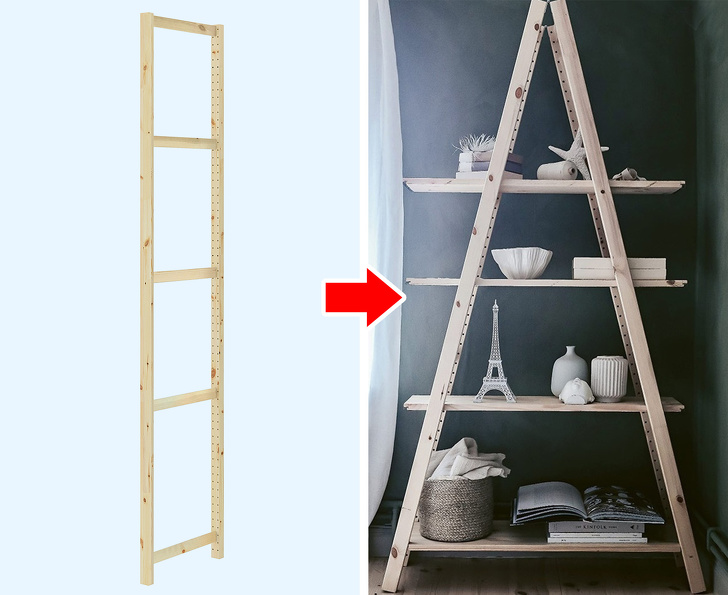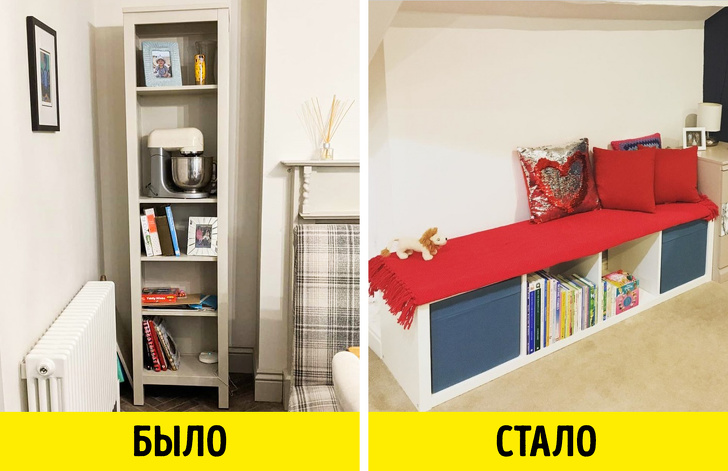 Деколи достатньо лише змінити кут зору. Перевернутий стелаж, забитий книгами і накрита м'якою ковдрою, може легко перетворитися в куточок для читання або просто зручну лавку.