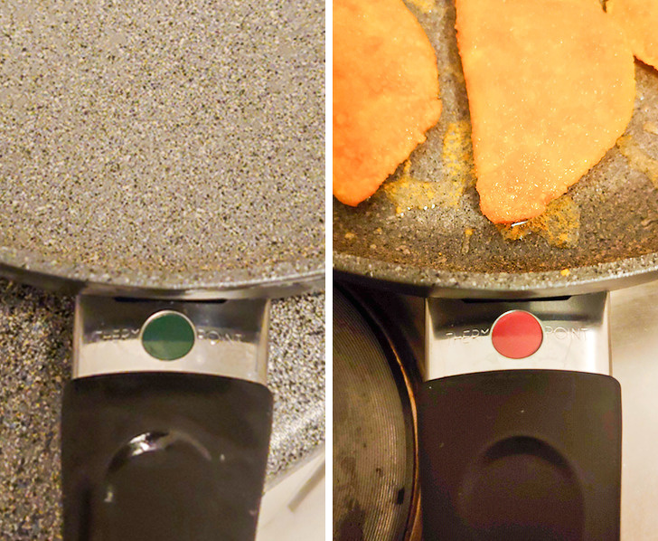 12. Спеціальний індикатор на сковороді показує, коли вона добре прогрілася