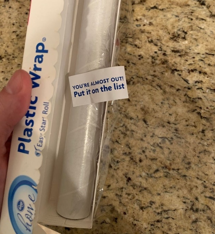 17. Прикріплена до харчовій плівці папірець підказує, коли вона майже на кінець