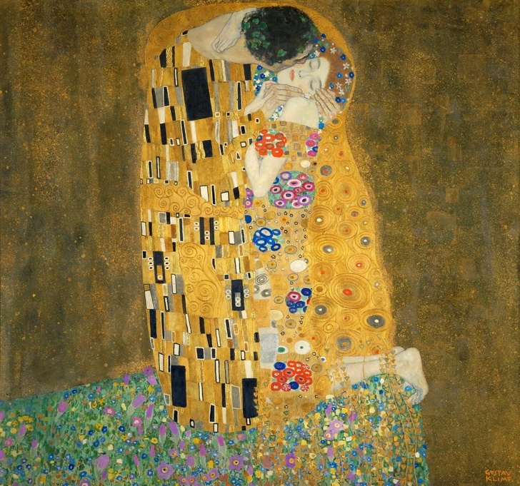 «Поцілунок» ось уже друге століття хвилює розуми любителів живопису. Навколо полотна ходять різні легенди, адже достеменно не відомо, кого зобразив художник.