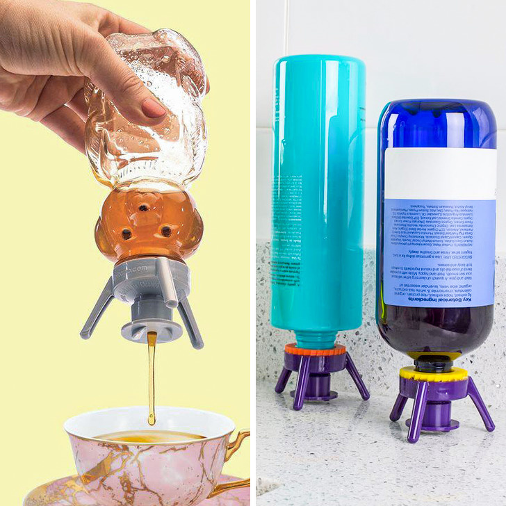 1. Кришки з ніжками: дозволяють зберігати пляшки догори дном і використовувати вміст до останньої краплі