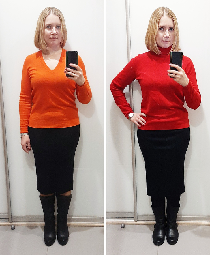 Крім того, виявилося, що приміряти одяг нових фасонів, кольорів і стилів просто необхідно — корисно дивитися на себе під іншим кутом і розуміти, що деякі образи цілком підходять і вам теж, а не тільки моделей з глянцевих журналів.