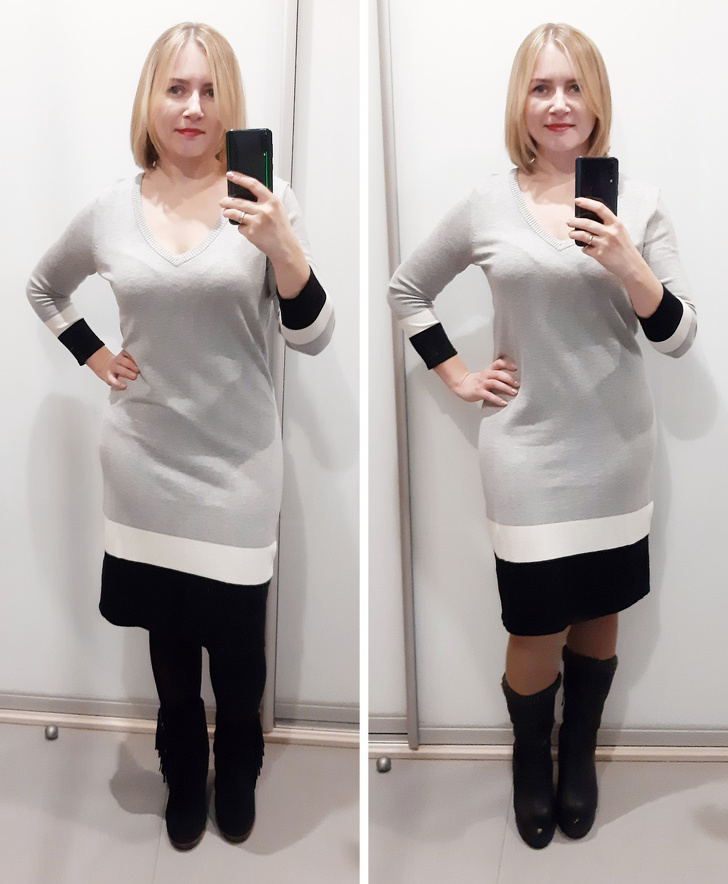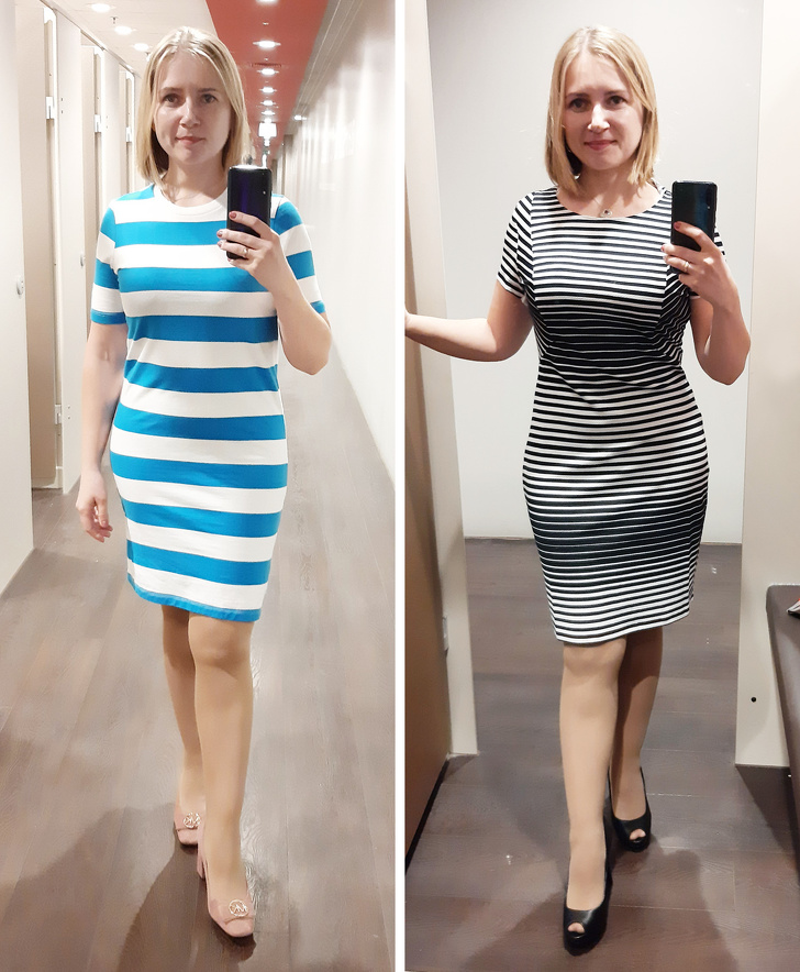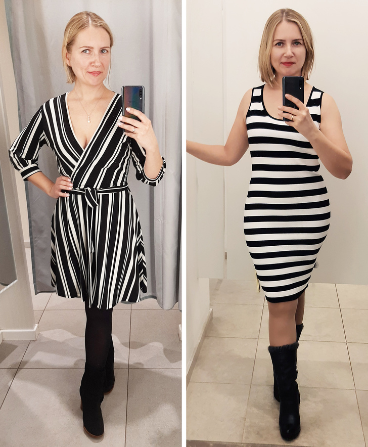 Цей експеримент відкрив для мене багато нового. Однозначно, після цього я без остраху буду купувати одяг у тонку горизонтальну смужку і подумаю над тим, щоб придбати сукню з контрастними вставками з боків. Прагненню придбати одяг на розмір менше я готова сказати тверде «ні», а от взуття нюдовых відтінків — тільки «так».