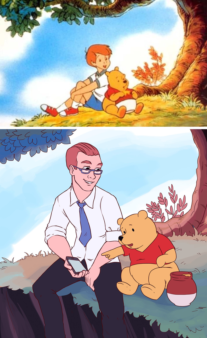 Social.org.ua вирішив згадати наших героїв улюблених мультиків і уявити, як би вони могли змінитися з плином часу. Подивіться разом з близькими, як змінилося життя Гайки, Крістофера Робіна та інших персонажів. Напевно це воскресить у пам'яті кілька приємних моментів з шкільних років.