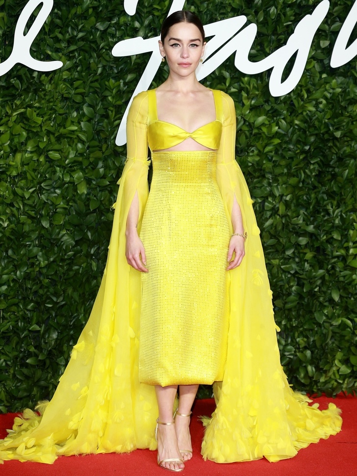 У грудні ж Емілія відвідала Fashion Awards у яскравому костюмі з оригінальними рукавами. Відмінне стильне рішення для завершення року.