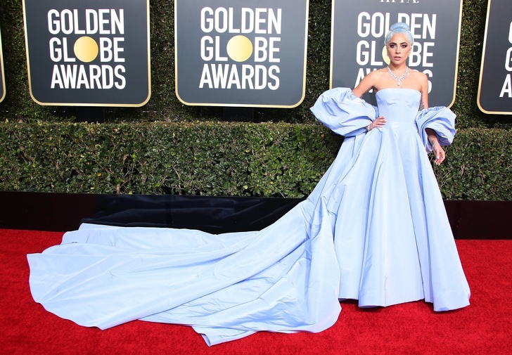 Співачку можна сміливо назвати зіркою року: вона зібрала, мабуть, всі можливі статуетки та нагороди. На церемонії вручення «Золотого глобуса» Леді Гага затьмарила всіх сукнею ніжно-волошкового кольору і волоссям йому в тон.