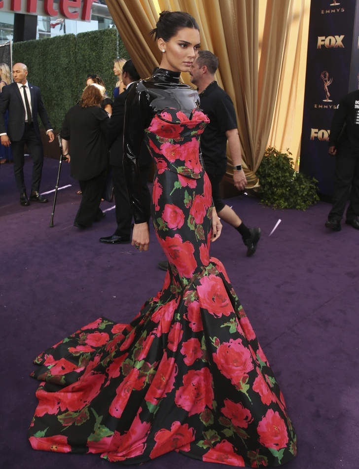 У цьому вбранні модель з'явилася на врученні премії «Еммі». Величезні червоні квіти у поєднанні з латексом викликали неоднозначну реакцію громадськості, тим не менш плаття безперечно справило враження і запам'яталося.