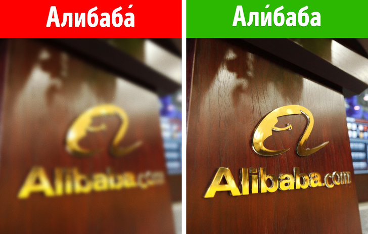 Китайська компанія Alibaba носить ім'я головного героя арабської казки «Алі-Баба і сорок розбійників». У міжнародному варіанті наголос у назві цієї фірми прийнято ставити на другий склад.