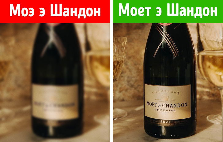 Одна з найбільших компаній з виробництва ігристих вин Moët & Chandon названа іменами перших власників — Клода Моэта і П'єра-Габріеля Шандона де Бриаллье. У відповідності з правилами французької мови, «т» на кінці «Моет» озвучується, перша «н» в «Шандон» вимовляється твердо, друга — м'якше.
