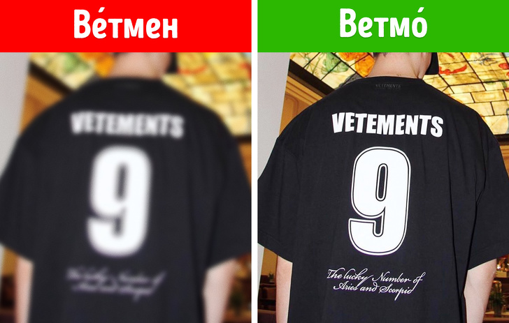 У перекладі з французької Vetements означає «одяг». У відповідності з правилами транскрипції єдино вірним способом вимови цього бренду є «Ветмо».