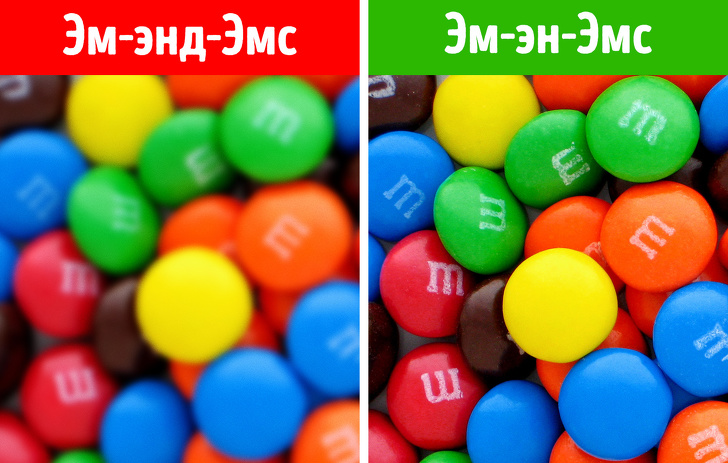 Шоколадне драже M&m's названо за першими літерами прізвищ двох засновників компанії (Mars & Murrie — Марс і Мьюрри). Так вже склалося, що історично правильним вимовою є «Ем-ен-Емс».