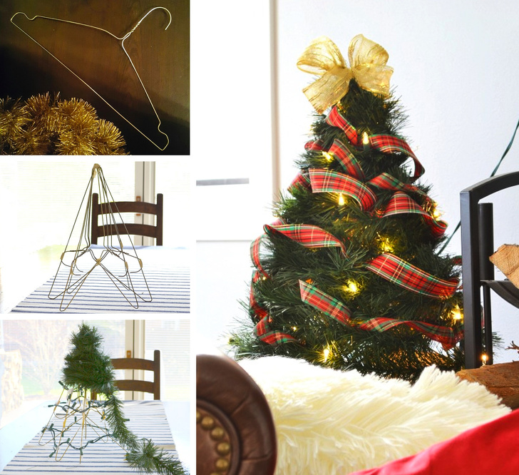 Ні, це не магазинна штучна ялинка, яка потрапила сюди помилково. Всього кілька тонких залізних вішалок, ялинкова мішура, гірлянди, кульки, трохи зусиль — і у вас вийде така красуня.