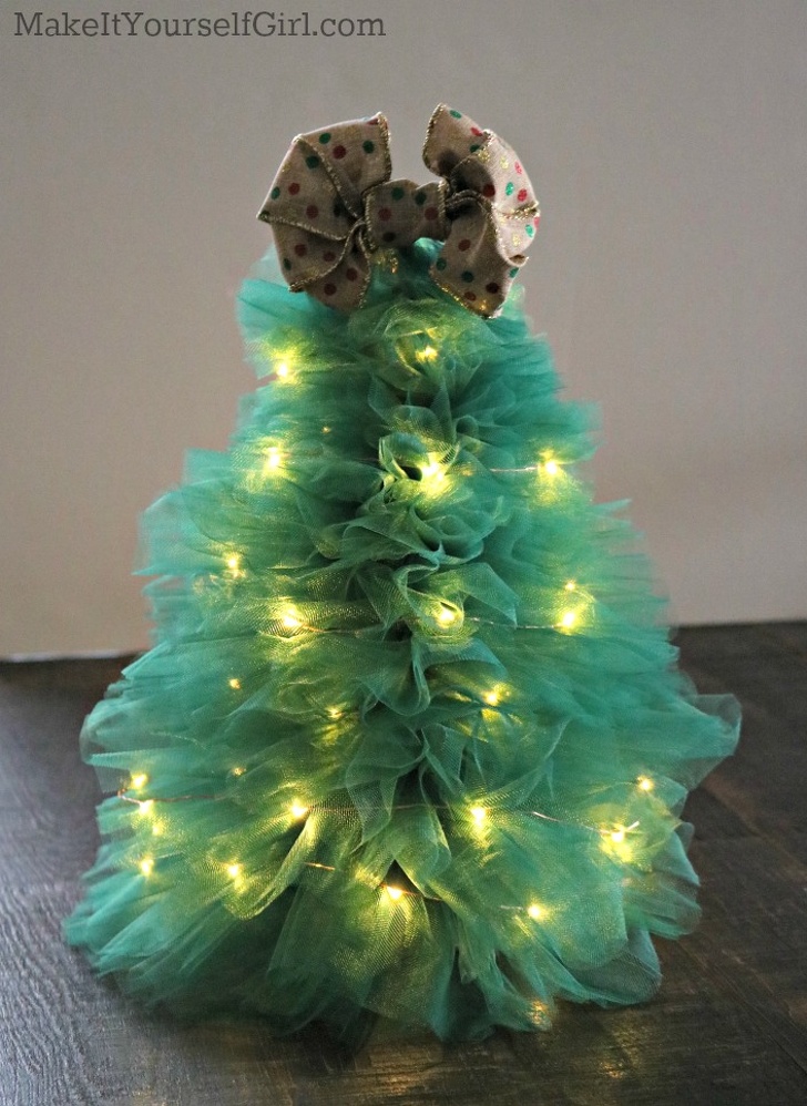 Блискуча і повітряна ялинка з тюлю стане ще краще, якщо в її надрах заховати мерехтливу гірлянду.