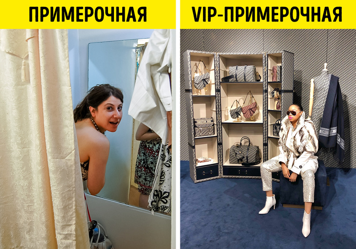До приїзду зірки в VIP-кімнаті вже вивішені всі цікавлять моделі. Як правило, знаменитості заздалегідь повідомляють, що хотіли б приміряти, і продавці зустрічають їх вже підготовленими. У цій примірювальній клієнт може попросити що завгодно: випити, перекусити, а ще йому надається персональний помічник.