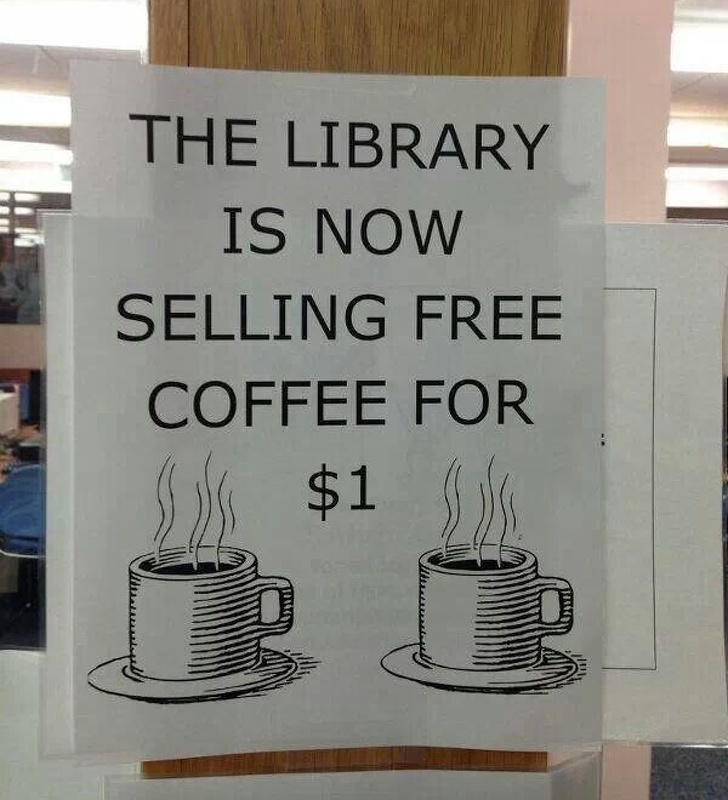 «Тепер у бібліотеці продається безкоштовний кави за $ 1».