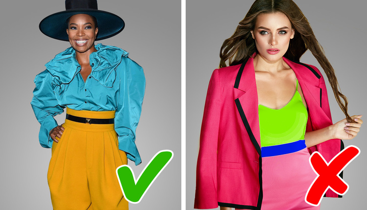 Багато людей бояться використовувати в гардеробі яскраві кольори. Вони думають, що їх одяг буде виглядати кричущо. Але насправді побоюватися нічого. Базові кольори — червоний, синій, жовтий — відмінно поєднуються один з одним. Просто не перевантажуйте свій образ занадто великою кількістю яскравих кольорів, щоб не виглядати без смаку.