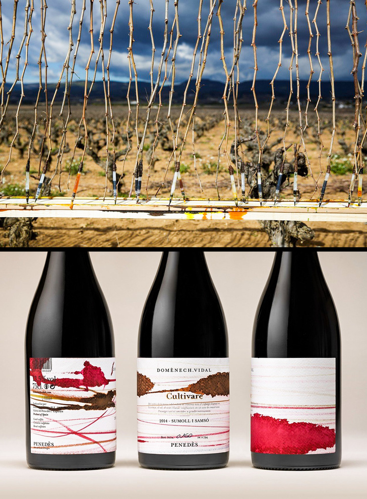Виноградна лоза під впливом вітру малює кожну етикетку для вина Domènech.Vidal