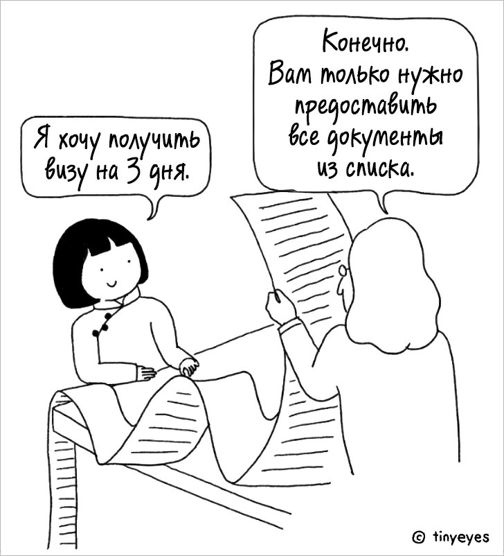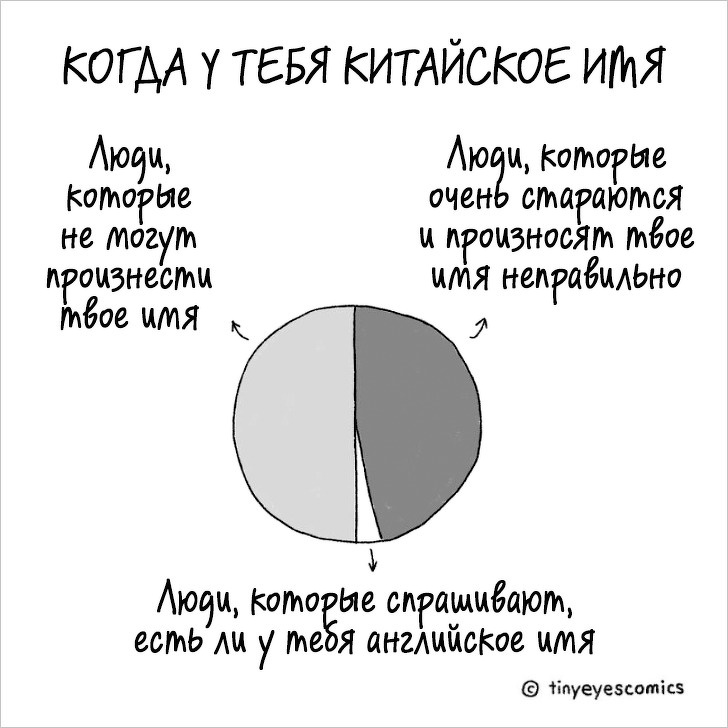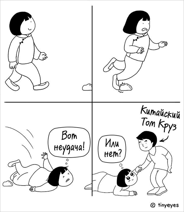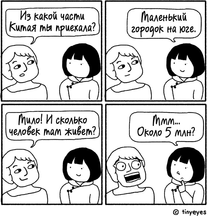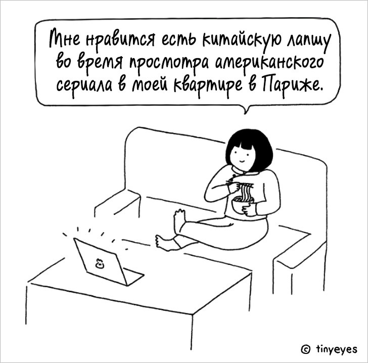 2 роки тому китайська художниця Цю Цао завела блог з коміксами, які наочно показують різницю між азіатською і європейською культурою. Блог називається Tiny Eyes, тобто «крихітні оченята». Цю Цао вдалося виїхати з Пекіна за кордон і стати популярним графічним дизайнером. Тепер вона працює і подорожує, не забуваючи регулярно поповнювати свій instagram новими картинками. У чому секрет їхньої популярності? У тому, що вони стовідсотково піднімуть вам настрій і розширять світогляд.