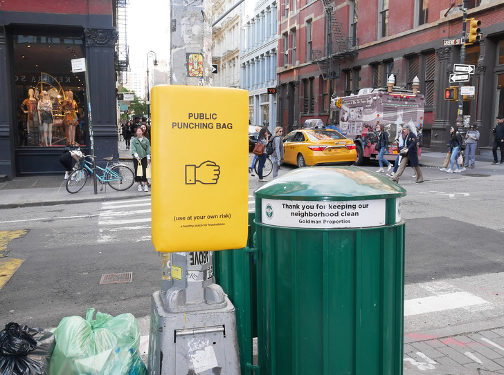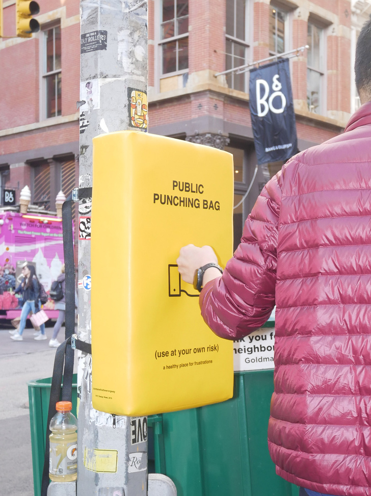 22. Груша для биття, розташована прямо на вулиці в Нью-Йорку. Не секрет, що роздратованим жителям мегаполісів дуже потрібна розрядка