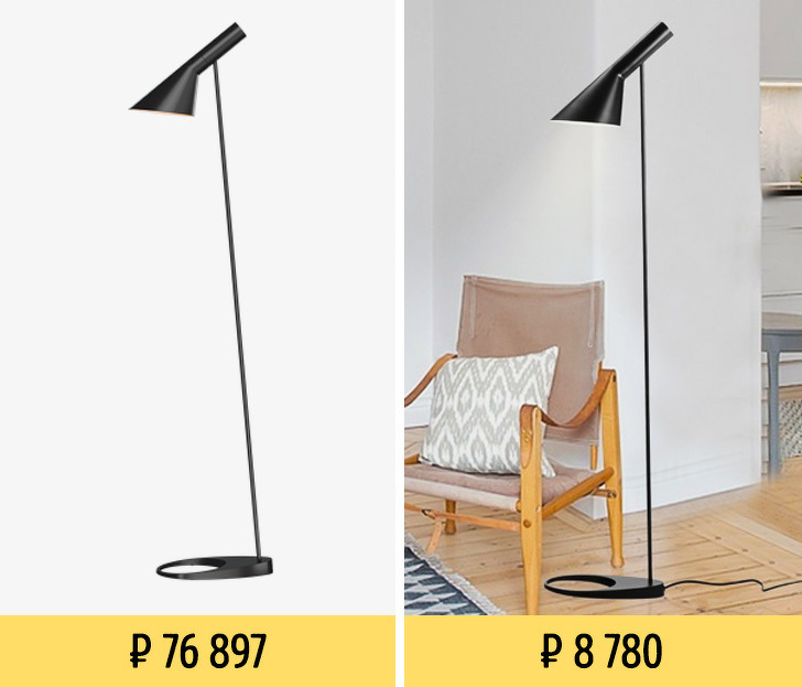 У серію входять настільна лампа, бра і торшер. Оригінали можна придбати на сайті компанії Louis Poulsen, але коштують вони дуже дорого. А на AliExpress представлені досить якісні репліки ламп AJ: 1, 2, 3.