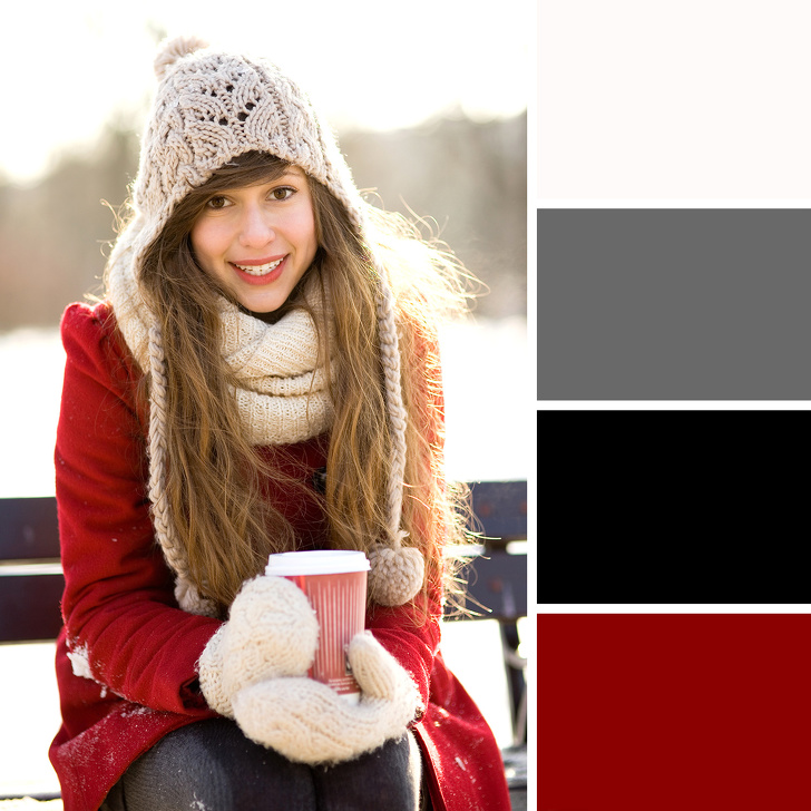 Шанувальники червоного взимку точно не залишаться без уваги. Тим більше, що Інститут кольору Pantone назвав червоний кольором зими 2018-2019. Хочете виділятися з натовпу? Купіть червоне пальто або пуховик. Доповніть комплект чорними колготами та рукавичками. Або скомбінуйте червоне пальто, чорні штани і білий шарф.