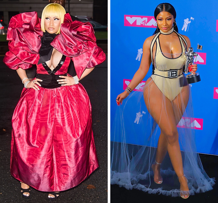 Нікі Мінаж завжди була гарячою штучкою, яка сміливі і зухвалі образи, і цей рік не став винятком. Пишне червоне плаття і вершково-жовті волосся — такою вона постала перед публікою на модному показі Marc Jacobs, а за заповітної статуеткою на церемонії American Music Awards співачка з'явилася в чимось на зразок прозорої тюлевою сорочки, надітій поверх боді тілесного кольору. Так, таке може собі дозволити тільки епатажна Нікі Мінаж.