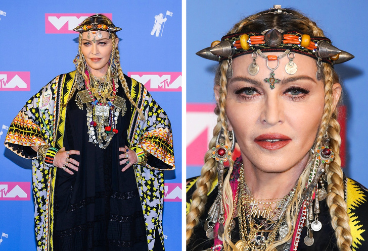 60-річна поп-діва не перестає дивувати. На церемонії вручення щорічної музичної премії MTV Video Music Awards 2018 Мадонна з'явилася в досить химерному вбранні. Експерти побачили в цьому вбранні елементи традиційного національного костюма берберів — невеликої етнічної групи, яка проживає в Північній Африці.