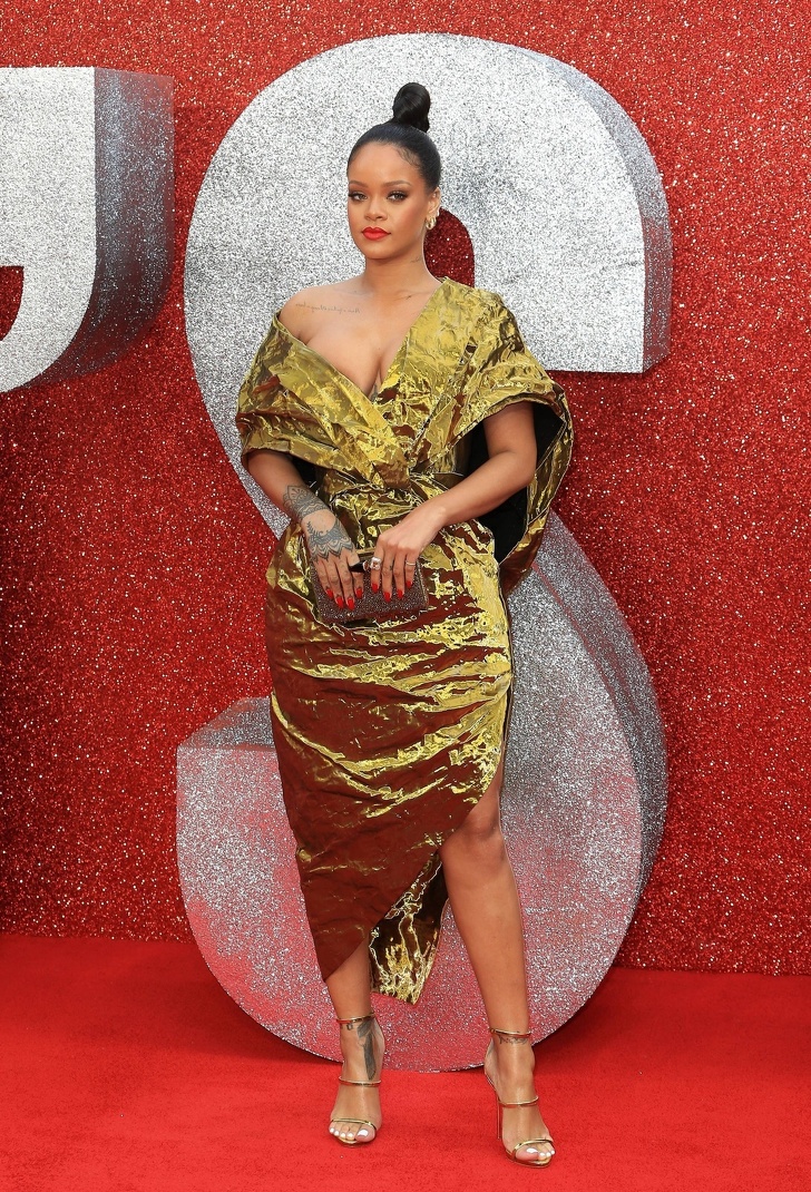 Неоднозначну реакцію глядачів викликало плаття Ріанни на прем'єрі фільму «8 подруг Оушена». Багатьом здалося, що зірка обернулося в шматок золотистої фольги, так і дуже глибоке декольте нікого не залишило байдужим. Сама ж Ріанна нітрохи не соромиться своїх видатних форм.