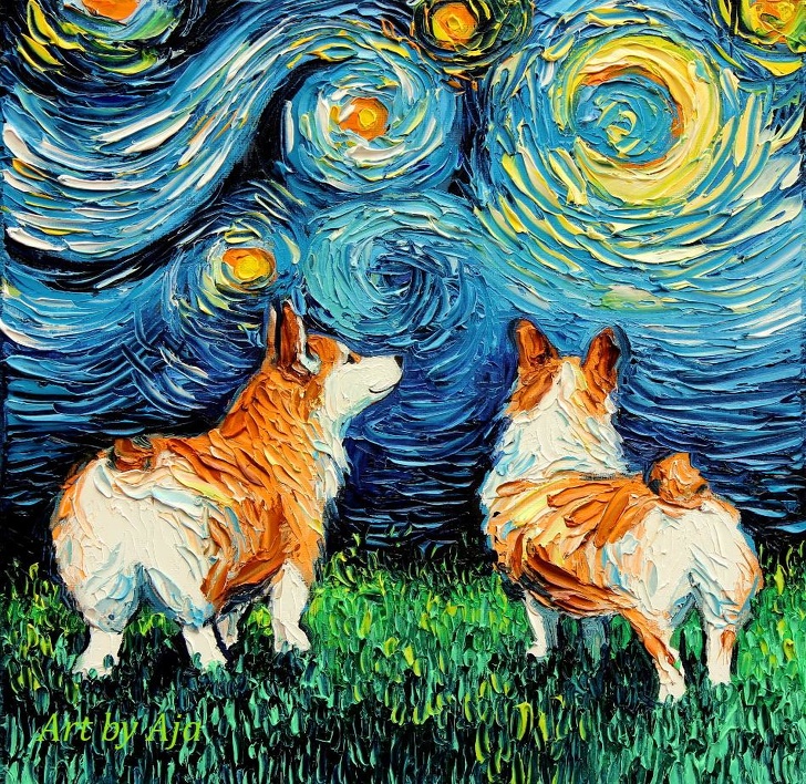 У кожного автора свій рецепт успіху. Наприклад, Айя Трієр (Aja Trier), американська художниця, воліє взяти трохи Ван Гога, розбавити його сучасним кінематографом і додати щіпку інтернет-улюбленців. Так народжуються її картини, які незмінно приводять у захват гостей виставок і відданих передплатників.