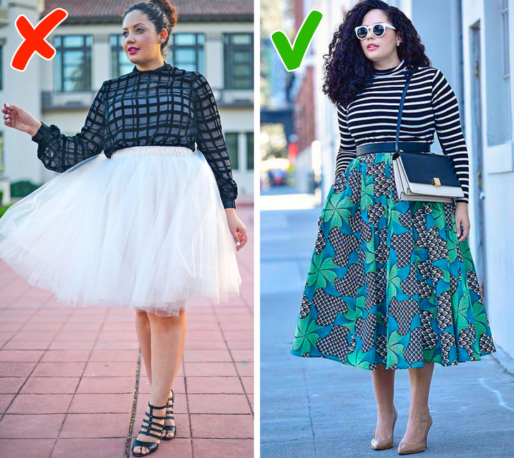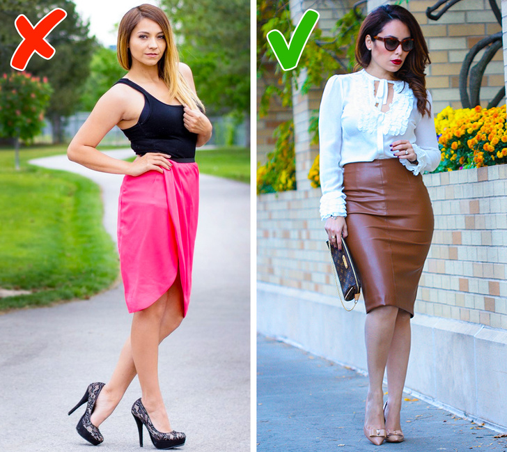 Спідниця-тюльпан — один із самих підступних предметів гардероба. Вона допомагає приховати широкі стегна, однак створює видимість стирчить живота навіть у самих худеньких дівчат. Особливо варто остерігатися таких спідниць щасливим власницям великого бюста, оскільки спідниця-тюльпан зробить верх ще більш масивним. Більш універсальний вибір — спідниця-олівець.