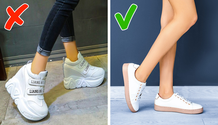 В кросівках на платформі зручності мало, а краси ще менше. У такому взутті ноги будь-якого розміру виглядають масивними і незграбними. Класичні кросівки і кеди виглядають набагато виразніше і при цьому добре вписуються в різні образи.