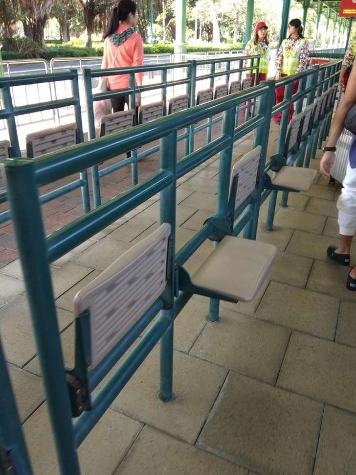 14. Поручні в Діснейленді в Гонконзі дозволяють відвідувачам відпочити в будь-який момент