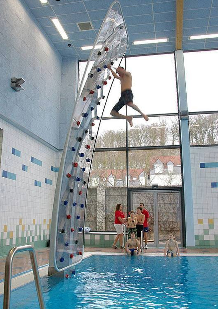 18. Стіна для скелелазіння підвішена над водою, тому вам не потрібно турбуватися про екіпіровці