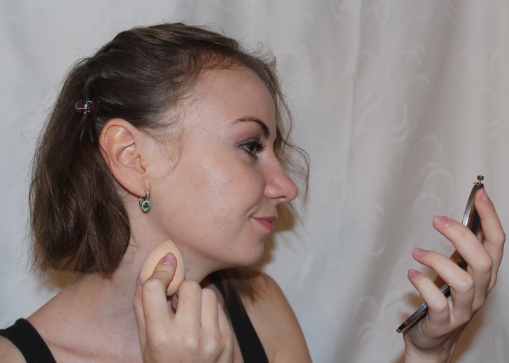 Щоб отримати ідеальну краї, використовуйте для овалу обличчя вологий, але добре віджатий спонж. Покриття вийде максимально легким і природним, без смуг і плям.